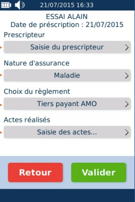 Après avoir renseigné les zones, appuyer sur Valider pour accéder au Récapitulatif et à la signature de la FSE.
