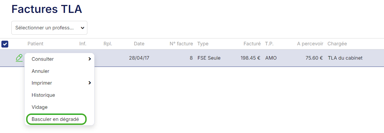 Il peut être nécessaire de passer une facture en mode dégradé dans les cas où il est impossible de la sécuriser.