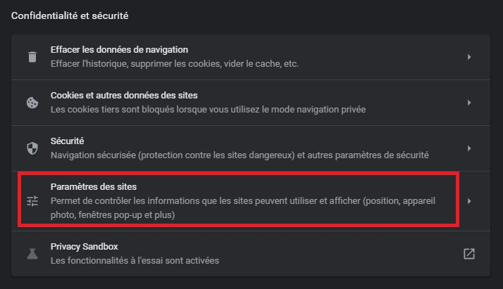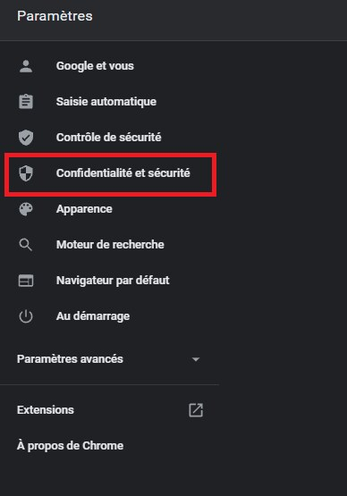 Paramètres : À gauche de votre écran, cliquez sur Confidentialité et sécurité