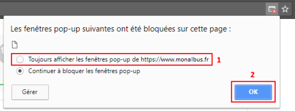 Cliquez sur l’icône Pop-up bloqués depuis la barre d’adresse :