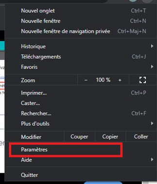 Cliquez sur les trois petits points en haut à droite de Chrome puis :