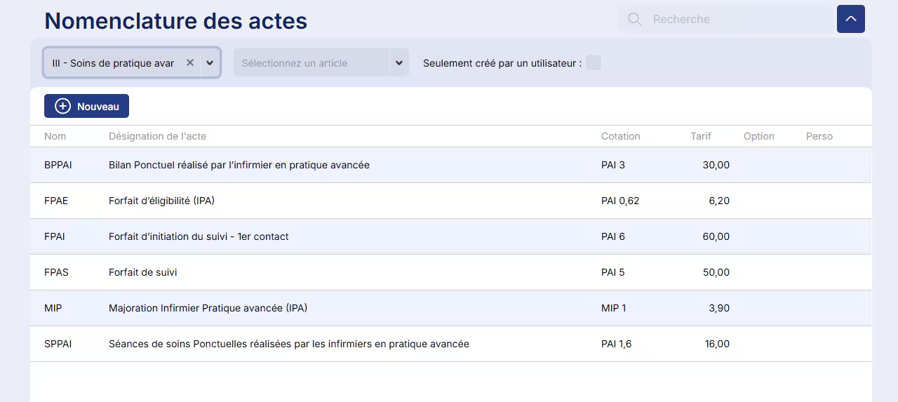 un « bilan ponctuel IPA » réalisé en présentiel et valorisé à hauteur de 30 € nommé BPPAI (PAI 3), facturable une fois par an et par patient ;