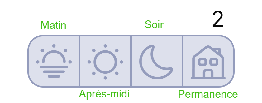 Vous y trouverez un calendrier du mois en cours ou chaque jour est divisé en 4 cases. Ces cases représentent trois périodes de la journée :