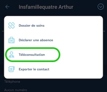 Touchez le bouton flèche en haut à droite puis Téléconsultation.