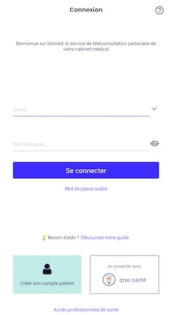 Vous serez invité, si ce n'est pas déjà fait, à vous connecter sur l'application Idomed avec votre identifiant et mot de passe.