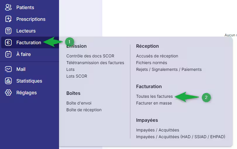 Cliquez sur Factures puis Toutes les factures