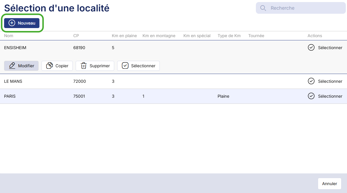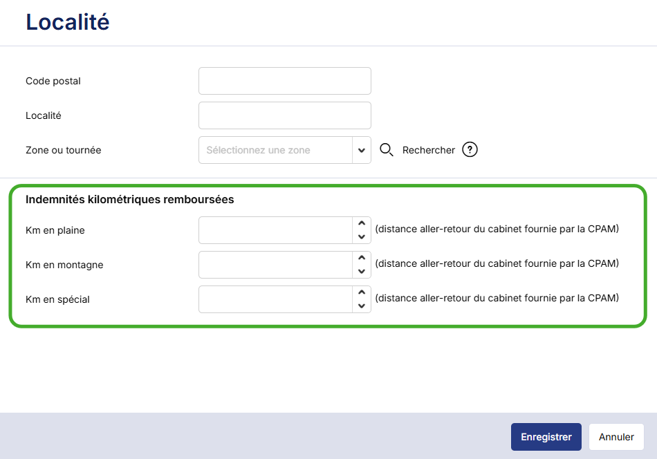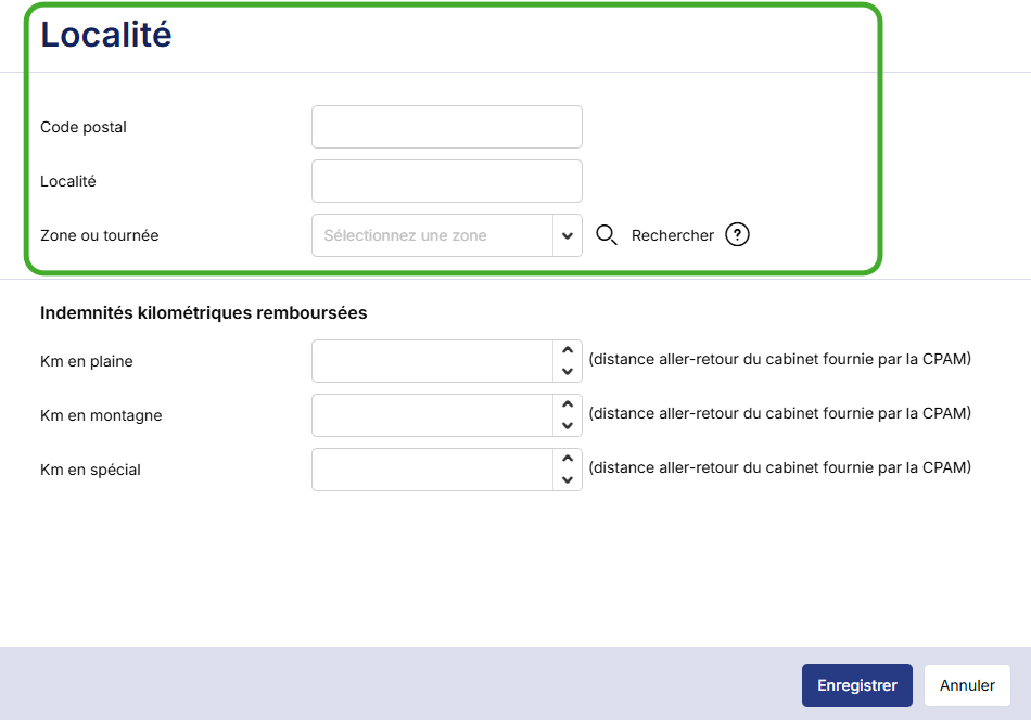 Saisissez les informations pour la création de votre localité dans la partie haute