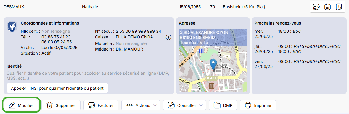Commencez par vous rendre sur la fiche de votre patient puis cliquez sur Modifier