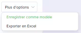 Personnalisez les filtres ainsi que les informations à afficher, cliquez sur Plus d'options puis Enregistrer comme modèle, et donnez un nom au modèle.