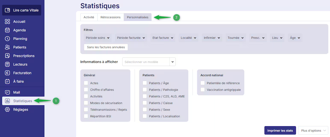 Pour y accéder, cliquez sur Stats puis sur Personnalisées et appliquez les filtres selon vos besoins.