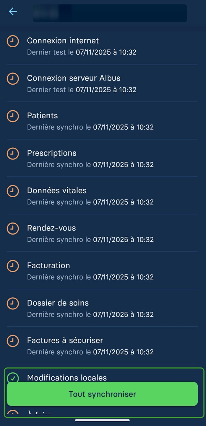 Pour synchroniser et mettre à jour les données de vos patients, leurs traitements, ou encore votre agenda entre l'ordinateur et l'application mobile, rendez-vous dans le menu Préférences depuis l'appli, puis sélectionnez votre cabinet.
